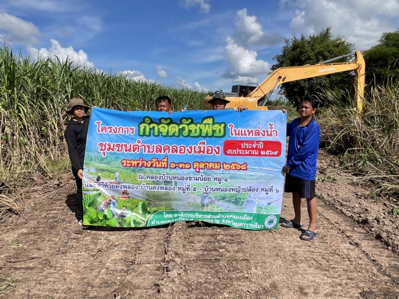 โครงการกำจัดวัชพืชในแหล่งน้ำชุมชนตำบลคลองเมือง ประจำปีงบประมาณ 2569 ระหว่างวันที่ 1-31 ตุลาคม 2568 ณ คลองบ้านหนองขามน้อย และลำห้วยดงพลอง