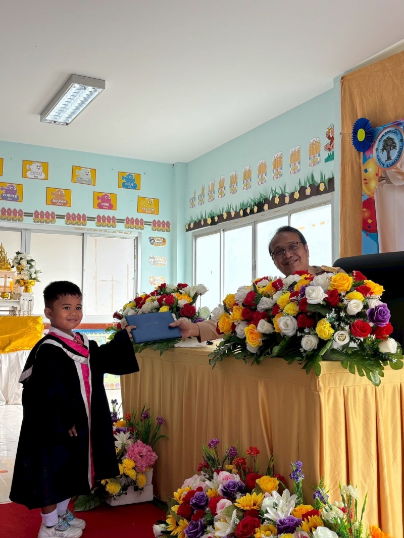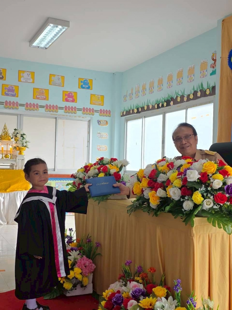 ได้จัดกิจกรรมโครงการเสริมสร้างกำลังใจในการศึกษาของเด็กปฐมวัย ประจำปีการศึกษา 2568 (พิธีมอบวุฒิบัตรบัณฑิตน้อย