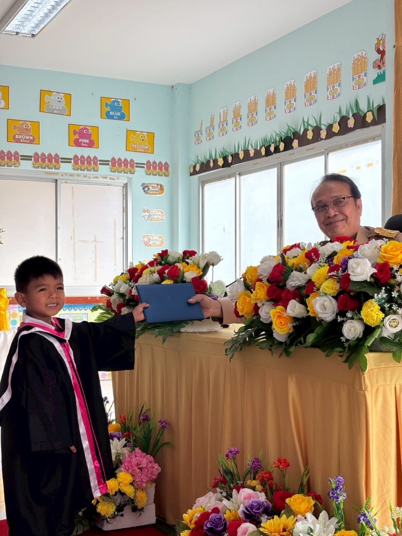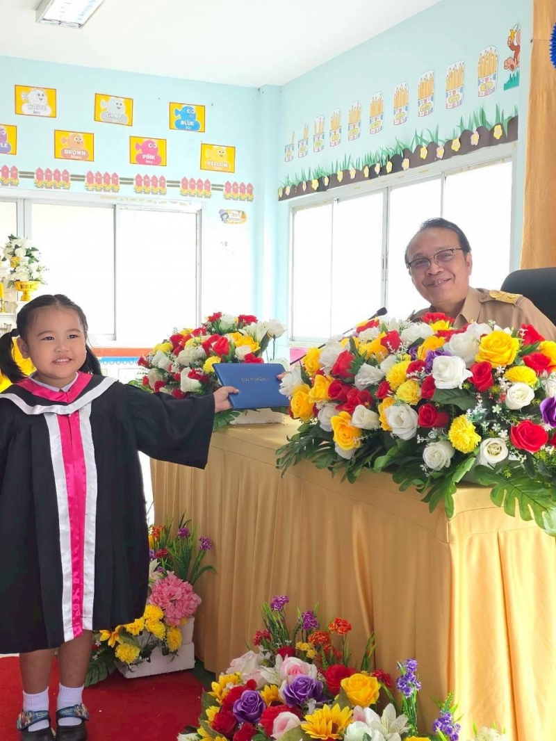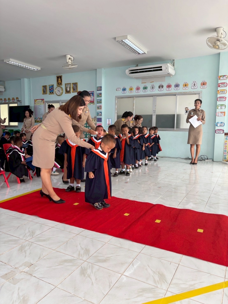ได้จัดกิจกรรมโครงการเสริมสร้างกำลังใจในการศึกษาของเด็กปฐมวัย ประจำปีการศึกษา 2568 (พิธีมอบวุฒิบัตรบัณฑิตน้อย